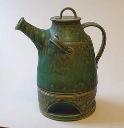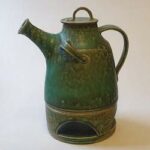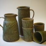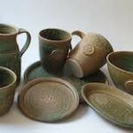 Neben einem kleinen Teil dicht gebrannten Gebrauchgeschirrs mit einer grünen Effektglasur, liegt mein Hauptaugenmerk auf Raku gebrannten Skulpturen und handpolierten Rauchbrandgefäßen.