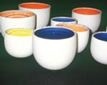 Marianne Pipping-Rabe fertigt in ihrer Werkstatt in Delmenhorst Gebrauchsgeschirr aus Steinzeug, mit Engoben bedruckt.