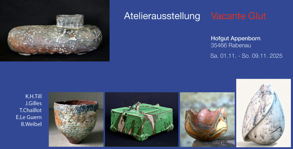 Karl-Heinz Till zeigt in seiner diesjährigen Atelierausstellung Anfang November 2025 unter dem Titel „Vacante Glut … dans la chaleur vacante“ neueste Arbeiten aus dem Holzofen.
