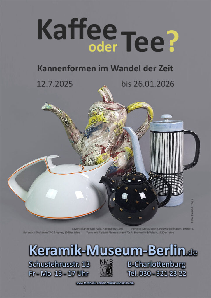Kaffee oder Tee? – Diese Frage stellt man sich im Keramik-Museum Berlin. Dort werden noch bis zum 26. Januar 2025 „Kannenformen im Wandel der Zeit“ präsentiert.
