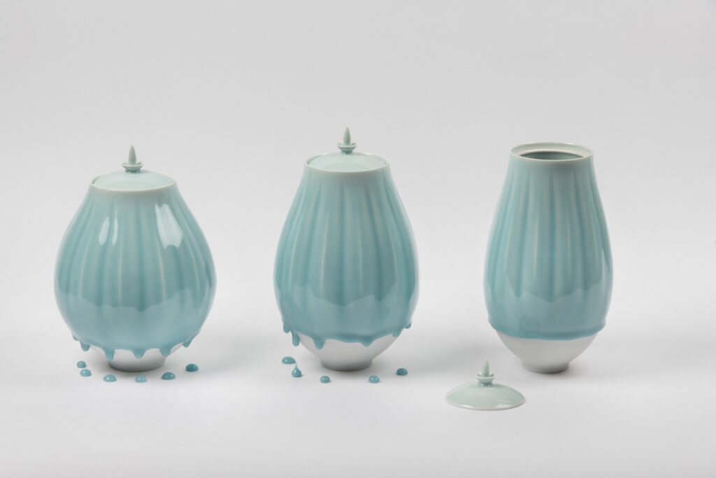 Gefäße „Polygonal Containers“, 2024, weißes Porzellan, gedreht