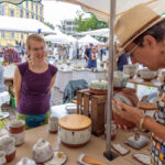 Die Keramiktage dienen auch als Plattform und Instrument der Nachwuchsförderung im Keramikhandwerk. Auszubildende der KünstlerInnen Martin McWilliam und Frauke Alber zeigen ihre Techniken live an der Drehscheibe auf dem Markt, um Gespräche zu initiieren und die Keramiktage Ausstellenden von morgen abzuholen.