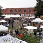 Gartenkeramik, künstlerische Objekte, Schmuck und eine große Vielfalt an Gebrauchsgeschirr werden zum Verkauf angeboten. Web- und Korbarbeiten bereichern den Markt sowie ein Stand mit Stauden und Kräutern.