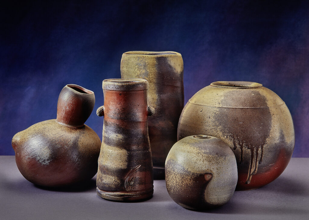 Ein besonderes Augenmerk sei auf seine Keramik aus dem Anagama gelenkt – dem 1977 selbst gebauten und ständig weiterentwickelten Holzfeuerofen nach japanischem Vorbild, seinerzeit eine Sensation.