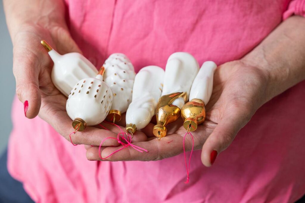 Unter dem Titel BEWAHREN zeigen sie ihren Weihnachtsschmuck aus Porzellan (mit Verkauf) und gehen auf dessen besondere Geschichte ein. Die beiden Künstlerinnen haben sich der Erforschung und künstlerischen Neuinterpretation von historischem Weihnachtsschmuck in Georgien gewidmet. In Erinnerung an ihre Jugendzeit leben Figürchen, Objekte und kunstvolle „Kugeln“ in weißem Porzellan mit feiner Goldmalerei wieder auf.