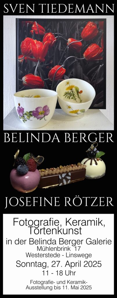 Belinda Berger öffnet am 27. April 2025 ihre Galerie in Westerstede für eine ganz besondere Ausstellung. An diesem Tag vereint sich Fotografie mit Keramik und Tortenkunst.
